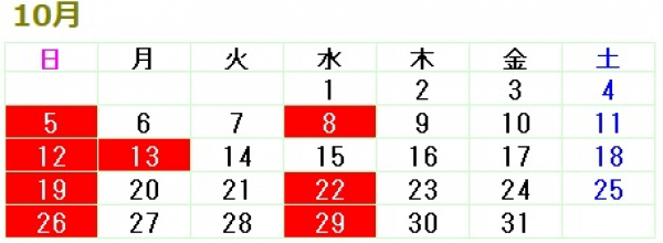 2025/09/30 10月の営業日のお知らせ みなさま、こんにちは! 少しずつ秋の訪れを感じられる気候になってきましたね。昔に比べて秋に降るシトシト雨が降らなくなり、寂しく感じております。そんなのは私だけかもしれませんが。おそらく短いであろう秋を楽しみましょう! 明日、10月1日は水曜日ですが、月初めなので営業致します! ご注文受け付けておりますので、お気軽にご用命くださいませ! さて、10月の営業日のご連絡を致します。 【休業日】10月5日(日)10...
