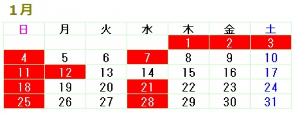 新年のご挨拶&1月の営業日のお知らせ