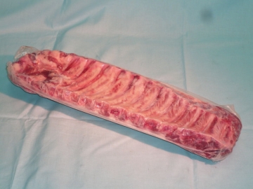売れ筋商品で、希少価値が高く、やわらかいロース側(背骨の中部分のカット)のリブです。 日本国内で一般的に流通しているものはバラのリブですが、本場アメリカではスペアリブと言えば、このバックリブが主流です。国内産では、このカット自体がほとんど存在せず、輸入されるものも 自国内での需要が高い為、なかなか 入手しにくい部位です。