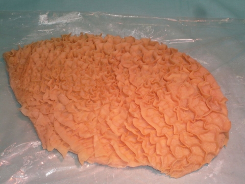 2014/12/02 牛 上ミノ 入荷しました! 牛に4つある胃の1番目で、1番大きな胃です。 クリーム色で固 くゴムのようなモンゴイカに 似た歯ごたえで、クセが無く食べやすいです。 切り開くと簑笠のような三角形になることから 「ミノ」と呼ばれています。 噛めば噛むほど味が出てくる極上の物です。